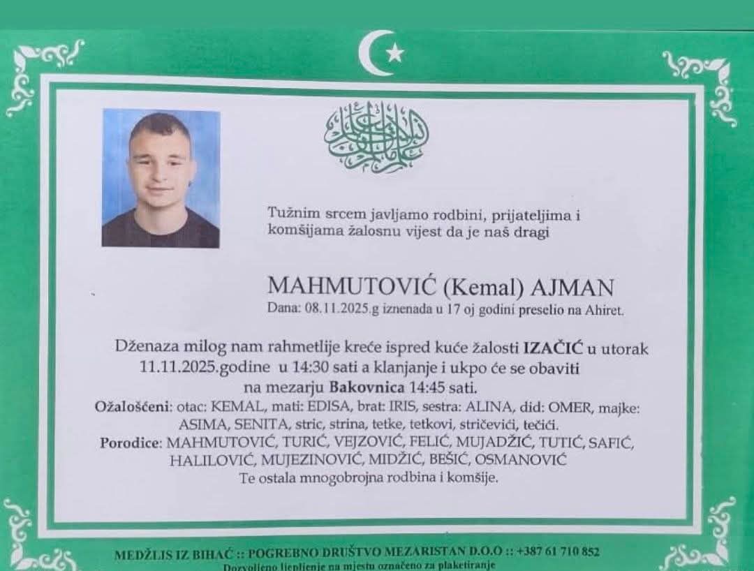 Dana 8. 11. 2025., u 17. godini života, iznenada, na ahiret je preselio Mahmutović (Kemal) Ajman.