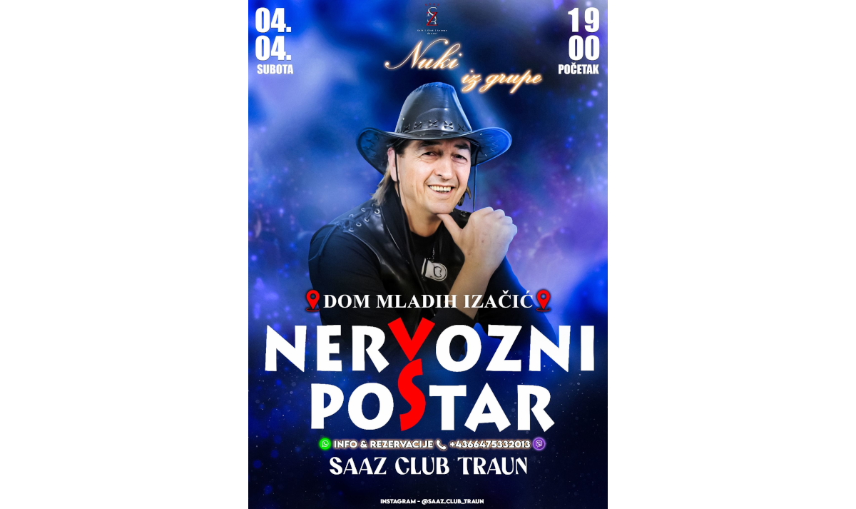 Dana 4. 4. 2026. godine SAZZ HOLDING uz podršku Savjeta MZ Izačić na čelu sa predsjednikom Rasimom Islamovićem organizuje koncert u DOMU MLADIH na kojem će zvijezda večeri biti legendarna grupa NERVOZNI POŠTAR.